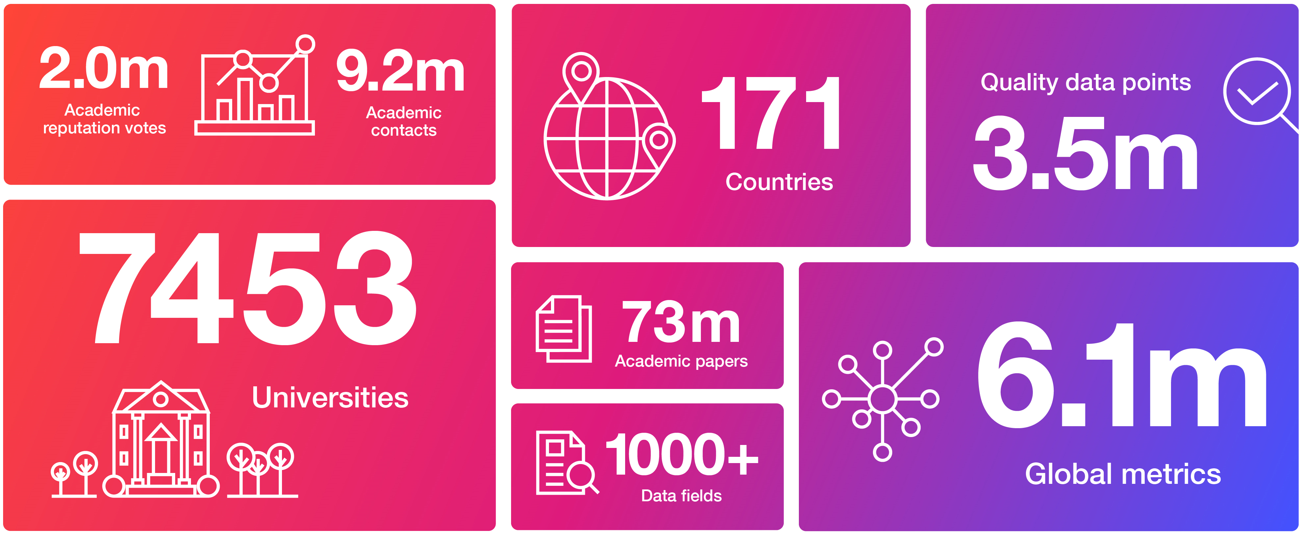 Leaders across higher education need to make critical business decisions, and they are increasingly relying on robust data and insights to support with their decision making and strategic planning. THE’s data and solutions empower universities, governments and organisations around the world. Learn more about our datasets and capabilities below: