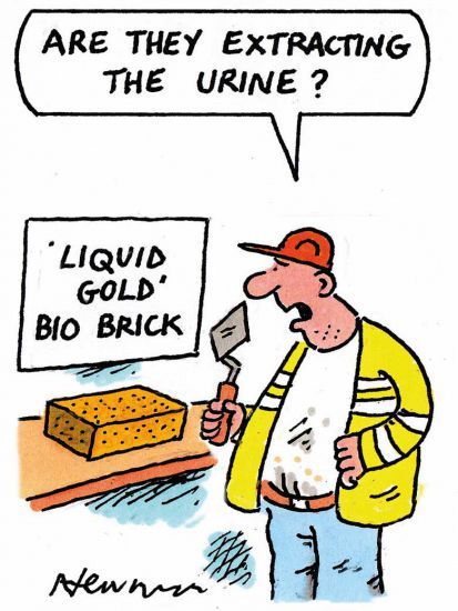 Students at a university in South Africa have created what is purported to be the world’s first brick made from human urine, The Guardian reported on 25 October. According to the article, the bio-brick was produced after urine collected from specially designed urinals at the University of Cape Town was mixed with sand and bacteria. Growing bio-bricks with urea has been tested synthetically in the US, the newspaper said, but Cape Town believes that this is the first time actual human urine has been converted into a brick. Dyllon Randall, a senior lecturer in water quality engineering at Cape Town, who supervised the project, said that the process by which the bio-bricks are made is similar to the way that seashells are formed and does not require high-temperature kilns. Their flush of excitement could also require a redefinition of what it means for someone to be “bricking it”, a slang term that refers to a slightly different bodily function.