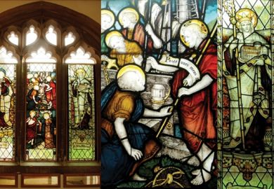 This stained-glass triptych of saints, including St Agnes and St Hilda, has been restored to its original splendour in the former chapel of what is now the University of Chichester.