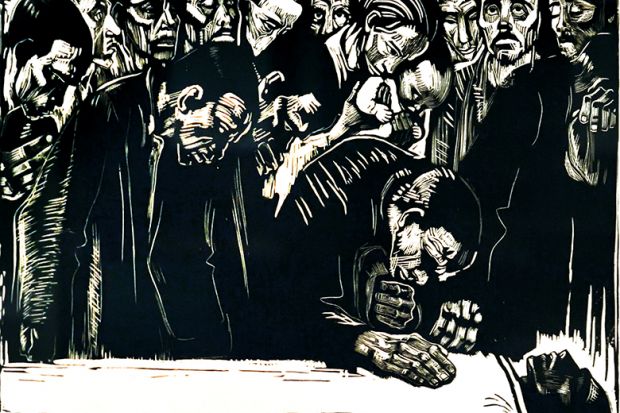 Many books have reproduced and analysed the oeuvre of Käthe Kollwitz since she garnered critical attention in the late 19th century with a series of etchings of weavers, based on an 1844 uprising of Silesian workers. Her work has been categorised as a gloomy and emotive protest against dispossession, poverty, war and state brutality. Mothers cradle dead children, victims of scarcities, and, later, as Kollwitz herself was to experience, their sons’ sacrifices in war. One etching from around 1900 is titled The Downtrodden, with parents despondently confronting their dying daughter. Twenty years later, Kollwitz produced a memorial image for the communist leader Karl Liebknecht, cut down at the behest of the state, a corpse, surrounded by broad-browed men bent in mourning.