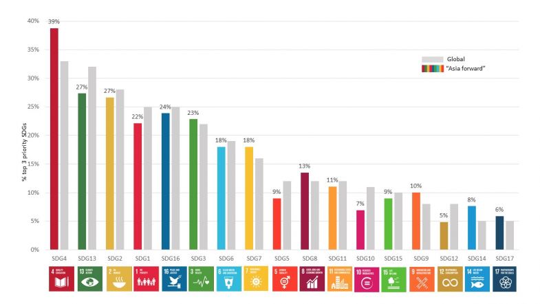 When the “Asia forward” students were asked which SDGs they consider to be their highest priority, quality education (SDG4) emerged as the top priority, receiving 39 per cent of the “Asia forward” students’ vote, compared with the global average of 33 per cent.