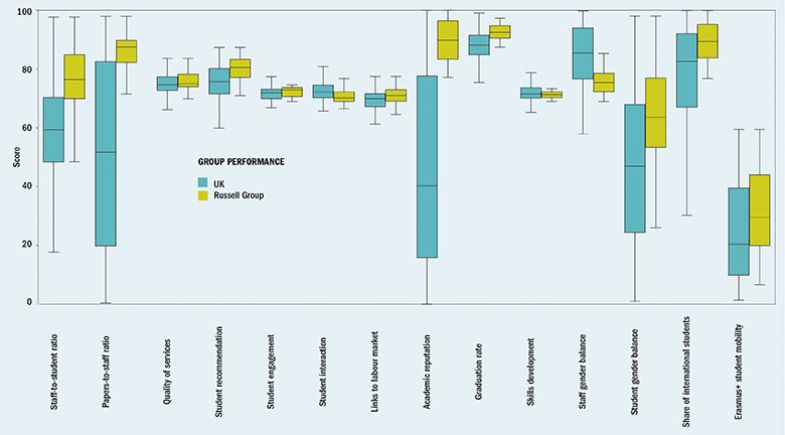 In the UK, the advantages enjoyed by Russell Group universities on academic reputation and staff-to-student ratio are clear, but in terms of staff gender balance the grouping lags behind.