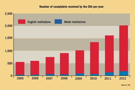Complaints have been steadily rising for many years, with official objections lodged with the Office of the Independent Adjudicator – the service of last resort for students making complaints – up by a quarter in 2012, according to its annual report, published on 13 June.