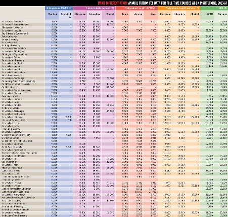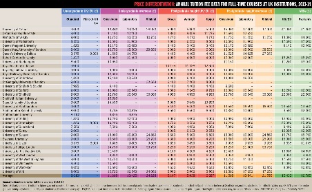 A survey of university fees for the coming academic year, using information provided by universities to The Complete University Guide, shows that prices vary wildly. Moreover, their levels may bear little relation to what it actually costs to teach the courses.