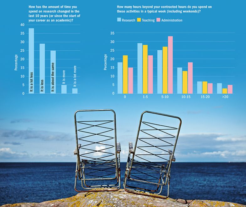 Many survey respondents see the difficulty of carving out research time even during the summer as symptomatic of a general rise in academic workload. A UK-based physical sciences professor puts it this way: âThe only thing that stops over the summer period is direct undergraduate teaching. Everything else continues at the same level, and since term-time workloads are already far more than 100 per cent of a standard working week (35 hours), that still doesnât leave much time for research.â