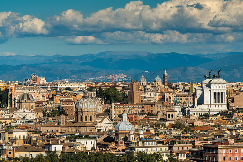 On the way up, you pass structures that encapsulate Rome’s late renaissance and baroque periods: the tiny gem of a church San Pietro in Montorio can namecheck many of the city’s great artists – and, with links to both Spanish and Irish interests in Rome, reminds us how international Rome has always been. Just above it is the monumental fountain known as Acqua Paola, a testament to papal grandeur and Roman engineering in one.