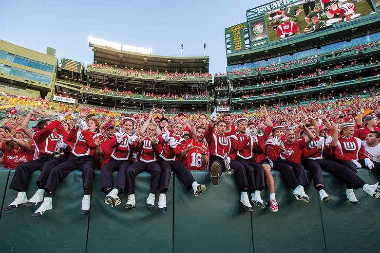 “On Wisconsin, on Wisconsin, stand up, Badgers, sing,” it blares, over and over. “Forward is our driving spirit, loyal voices ring/On Wisconsin, on Wisconsin, raise her glowing flame/Stand, fellows, let us now salute her name!”