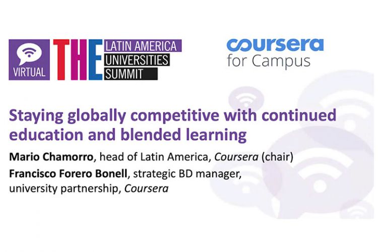Blended learning, in which online courses complement on-campus instruction, “is slowly becoming the new norm”, noted Francisco Forero Bonell, head of Coursera for Campus in Latin America, during the session “Staying globally competitive with continued education and blended learning” at the Times Higher Education Latin America Universities Summit 2020.