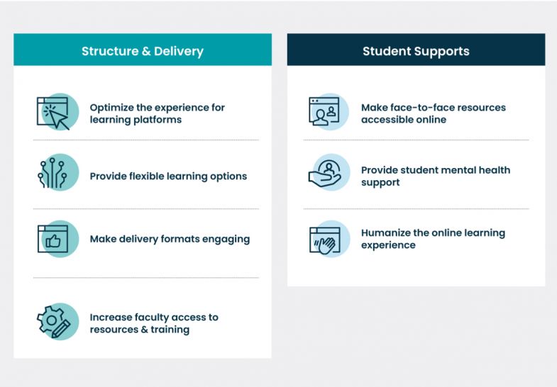 - Increase faculty access to resources and training: Just as students are not automatically ready to learn online, faculty are not automatically prepared to teach online. Pairing experienced faculty or instructional design experts with professors new to teaching online can alleviate pressure on faculty and improve the learning experience.