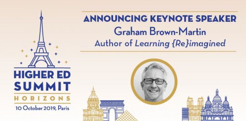 As Horizons quickly approaches, Salesforce.org is thrilled to announce Graham Brown-Martin as our closing keynote speaker! Graham is the author of Learning {Re}imagined, the best selling book on global education and has enjoyed a 30 year career spanning the education, technology and entertainment sectors. He was the founder of Learning Without Frontiers (LWF), a global think tank that brought together renowned educators, technologists and creatives to share provocative and challenging ideas about the future of learning. If you haven’t already, register today for the Higher Ed Summit Horizons to hear from Graham about how institutions can navigate the future. And continue reading to learn more about this thought provoking speaker.