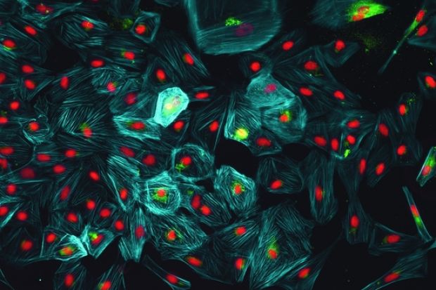 The heart muscle cells were grown from stem cells in a laboratory at Imperial College London. The photograph was taken by a research group at the British Heart Foundation Centre of Research Excellence, whose members include Gabor Foldes, Sian Harding, Michael Schneider and Nadire Ali.
