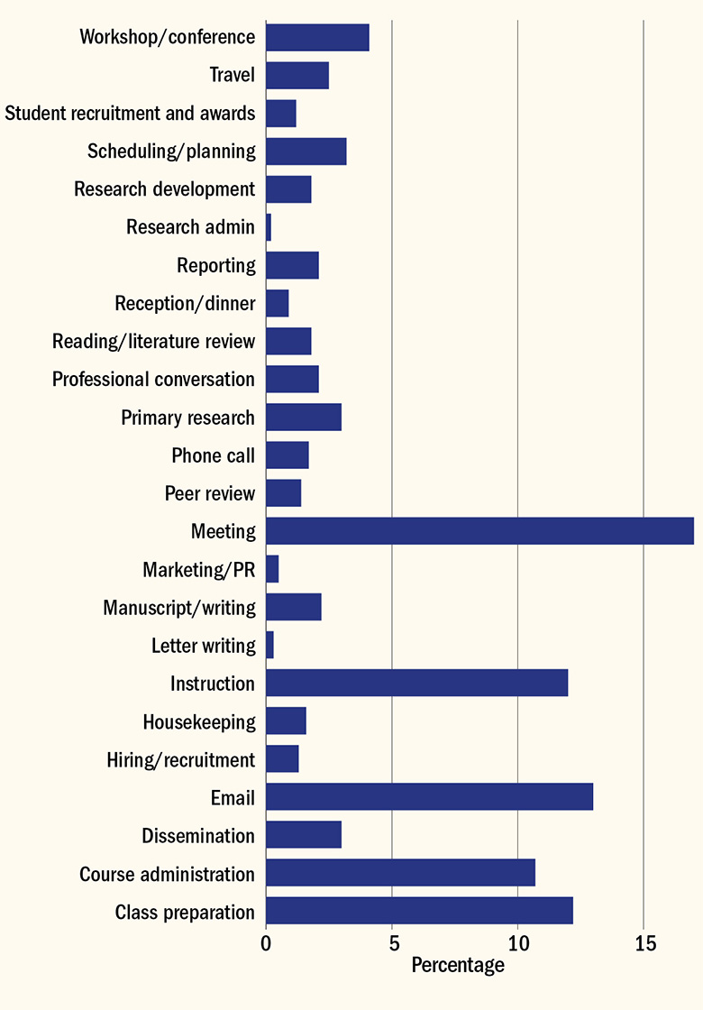 There are scant data on how long researchers actually spend filling out time sheets, complying with financial audits and so on. In a 2014 study of academics at Boise State University, in Idaho, respondents said that they spent 2.1 per cent of their time on “reporting”. This may not sound long, but it is not so much less than the 3 per cent of their time spent doing “primary research”, while 13 per cent of their time was allocated to unspecified email tasks.
