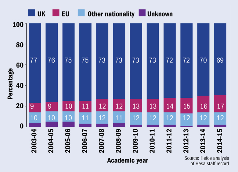 Research by the Higher Education Funding Council for England found that EU scholars accounted for 12,635 of 31,950 new academic posts created between 2004-05 and 2014-15 (39.5 per cent).