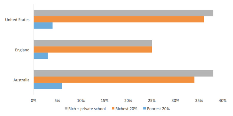 He presented data from the Organisation of Economic Co-operation and Development’s Programme for International Student Assessment (Pisa) showing the average maths score of children who later attended “elite” universities in Australia, England and the US. In each of those countries, the majority of children in that cohort achieving an above-average score were from rich backgrounds.