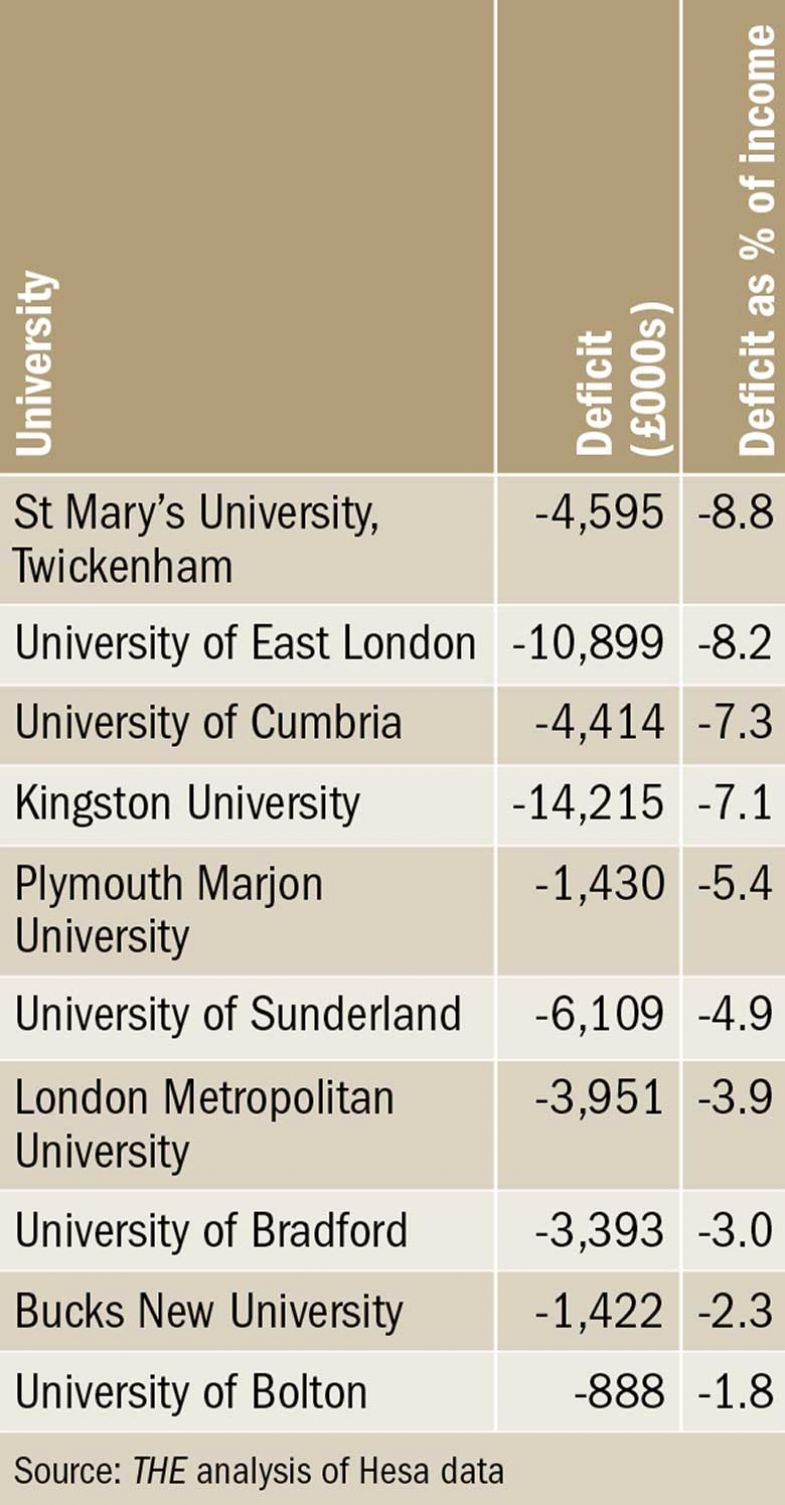 Times Higher Education analysis of English universities’ finances in 2016-17 shows that deficits at individual universities ran as high as £14 million, and up to nearly 9 per cent of total income.