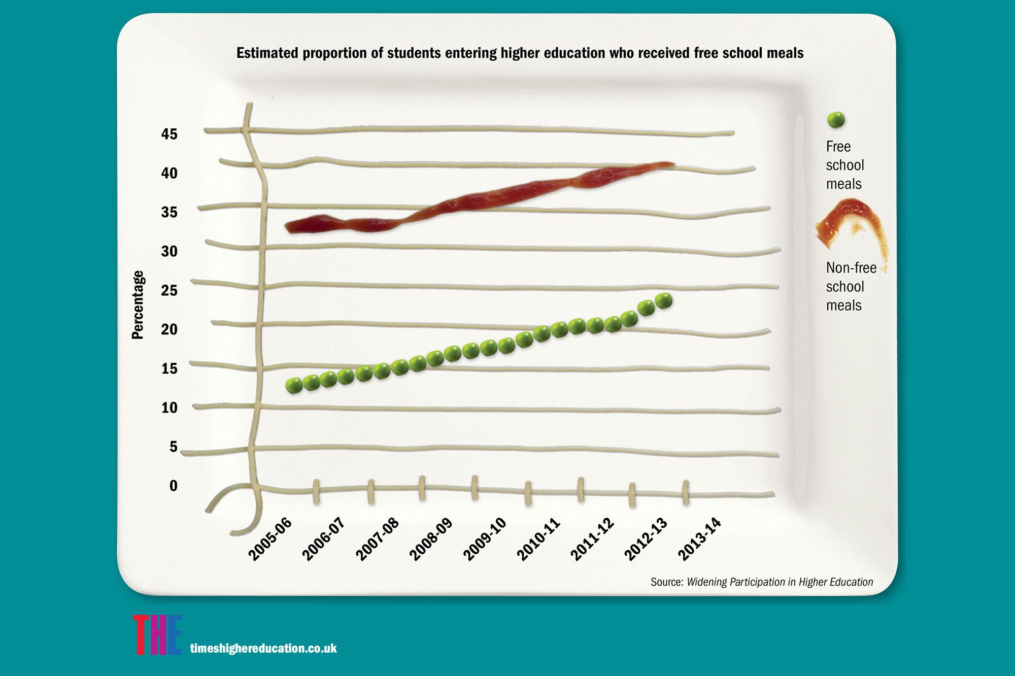 Over the same period the progression rate for state-school pupils who did not receive free school meals increased by 7 percentage points, according to the report, Widening Participation in Higher Education, published in July.
