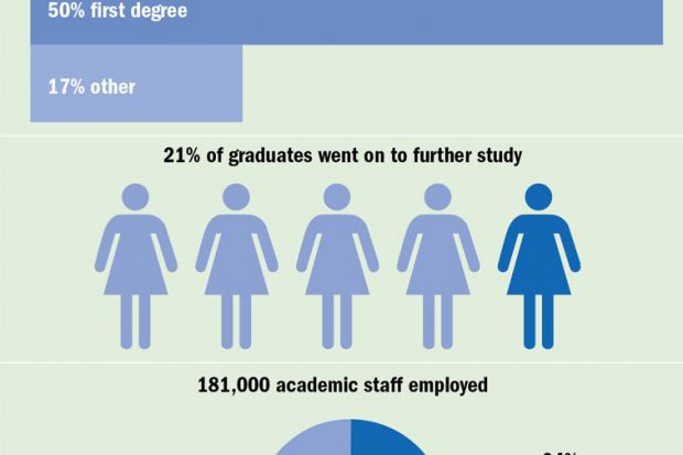 Half of all qualifications awarded that year were first degrees, with 42 per cent of all students studying science.