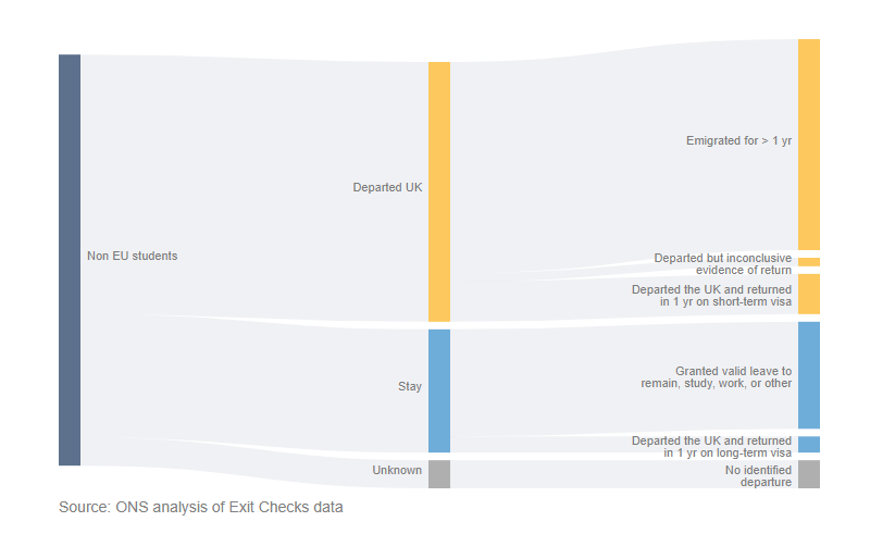 Where non-EU students went after initial period of leave to study