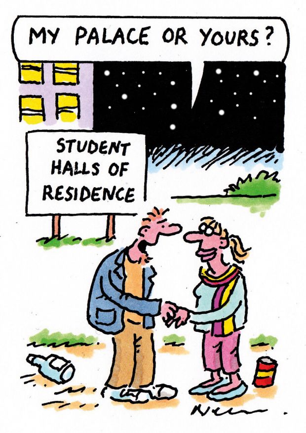 - As their loans rack up and house prices spiral, today’s university students could be forgiven for doubting that they will ever own their own homes. But at least they have the edge on their parents when it comes to student accommodation. The Daily Mail reported on 14 April that modern students are increasingly turning their backs on squalid Young Ones-style “digs” in favour of “upmarket” private halls of residence. These relative palaces – whose residents have doubled in seven years, according to the Higher Education Statistics Agency – boast such delights as gyms, private cinemas and “top-of-the range security”. Heriberto Cuanalo, director of student accommodation company Collegiate AC, said that today’s students were “striving to get more of a lifestyle from their accommodation”. But surely mouldy walls, broken boilers and shinning up drainpipes to your bedroom window because a Trotskyist newspaper seller convinced you after five pints of lunchtime lager that keys were for capitalist bullyboys counts as a lifestyle?