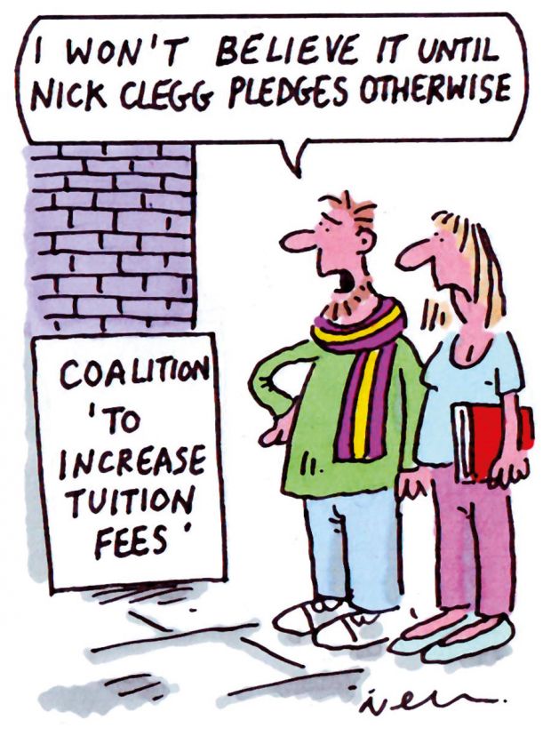 - Higher education returned to the general election campaign in the final days before voting. Labour’s promise to cut tuition fees to £6,000 was not one of the promises etched in the party’s 8ft-high “pledge stone” by Ed Miliband’s masons, but he still doubled down on the policy with a last-minute poster campaign on university campuses. Labour claimed that the Tories’ “extreme plans” would require tuition fees to rise to £11,500 a year to offset a £1.5 billion cut to the annual higher education budget – with Liberal Democrats again helping to make it happen. Former Conservative leader William Hague accused Labour of putting out “scare stories” – but also explicitly refused to rule out raising fees.
