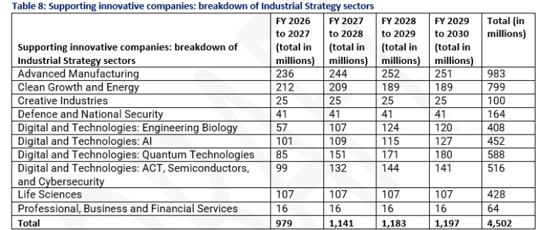 Similar breakdowns for investment in industrial strategy sectors have also been specified for bucket three – supporting innovative companies. This work is mostly carried out by Innovate UK, the UK’s innovation agency.