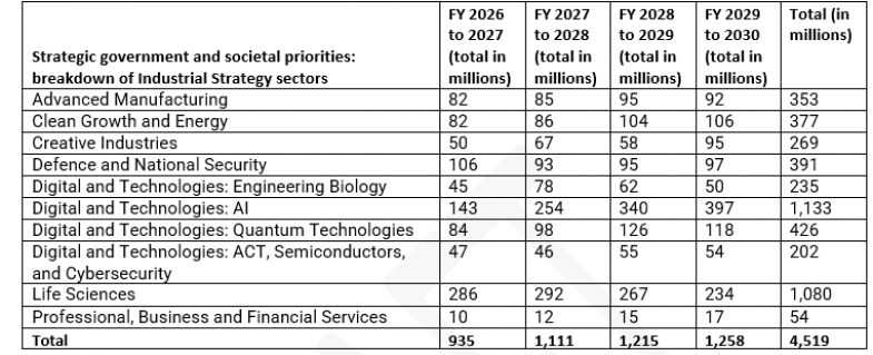 In contrast, funding for research focused on “strategic government and societal priorities” – including research aligned to the industrial strategy’s priority sectors – will increase significantly over the four-year spending review period ending in 2029-30. It increases from £1.924 billion in 2026-27 to £2.176 billion in 2029-30 – a 13 per cent increase.