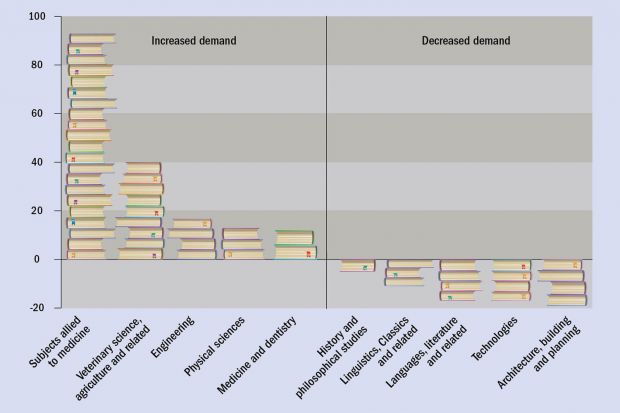 Meanwhile, non-vocational demand rose by just 6 per cent, with applications to history, philosophy, English and languages falling.