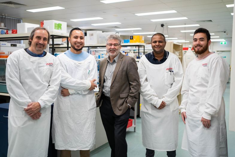 The Griffith University COVID-19 antiviral therapy research team Professor Kevin Morris, Dr Adi Idris, Professor Nigel McMillan, Dr Arron Supramanin and Mr Yusif Idres.