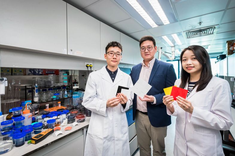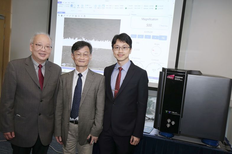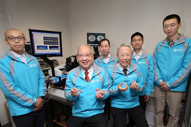 Professor Chan Chi-hou (second from left, front row), Professor Tsai Din-Ping (right, front row) and researchers at CityU have developed a novel tunable terahertz meta-device.