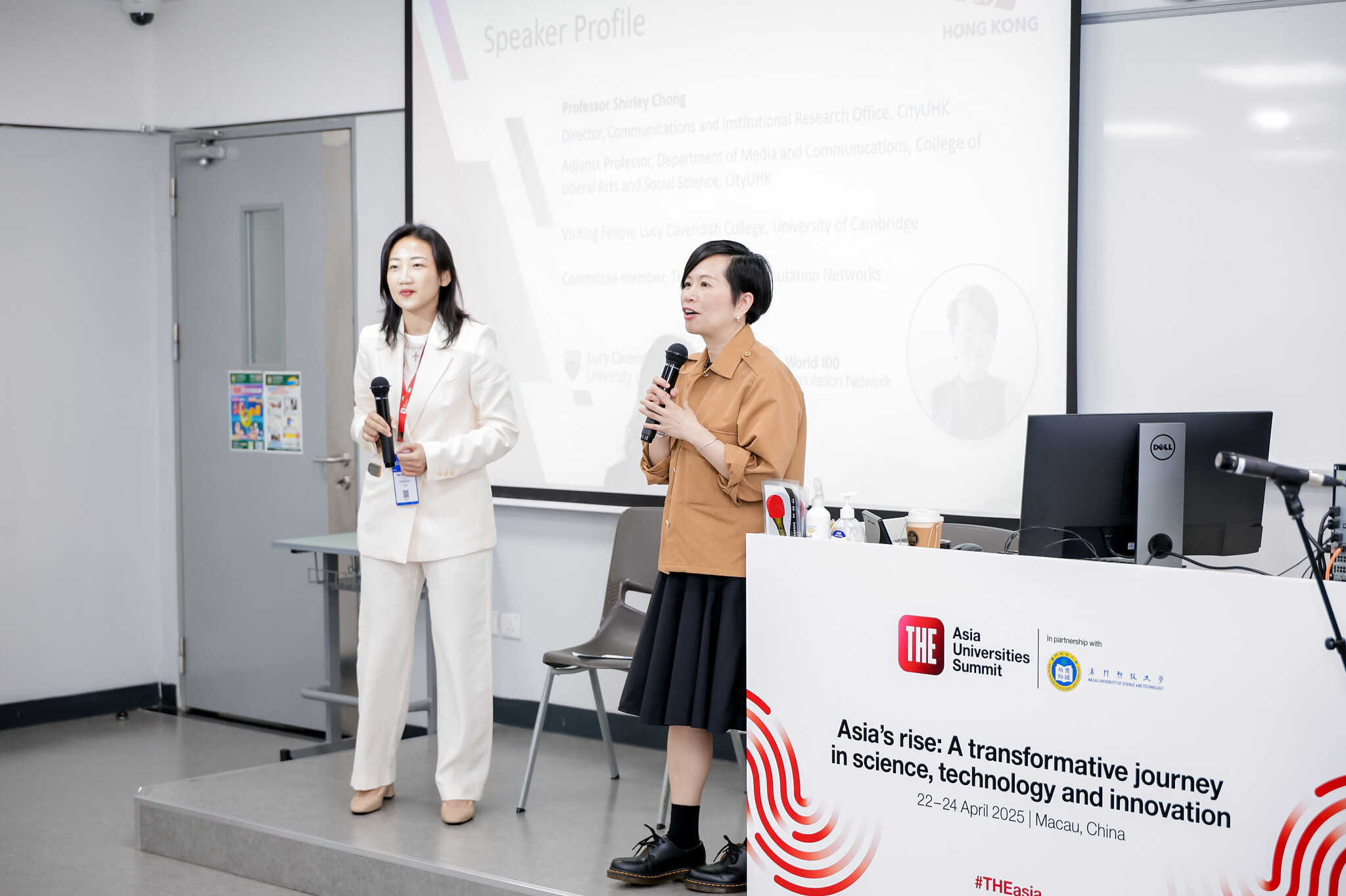 Mei Mei Lim (left), THE’s president for APAC, and Shirley Chong (right), director of communications and institutional research at CityUHK, speak at 2025 Asia Universities Summit in Macau