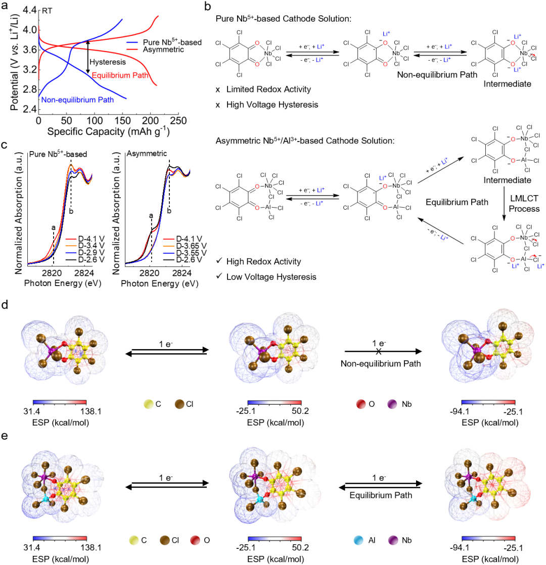 Figure 2 | Electrochemical reaction mechanism of the heteronuclear, heteroleptic ASCSP structure involving Nb⁵⁺ and Al³⁺