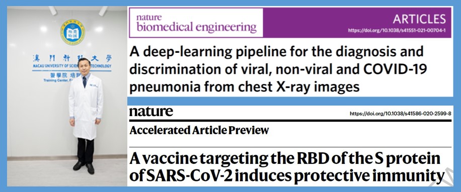 Publications from Chair Professor Zhang Zang's laboratory in the development of COVID-19 vaccines and novel AI-assisted diagnostic approaches for COVID-19 pneumonia.