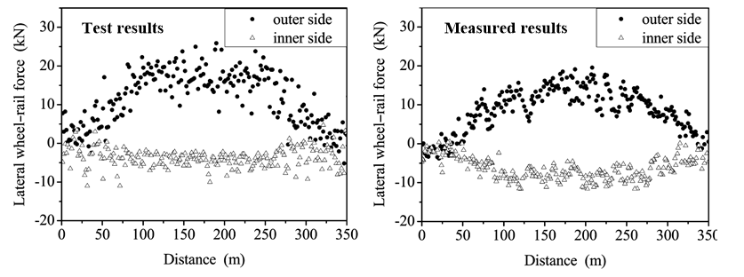 Comparison of measured and calculated lateral wheel–rail forces on a curved track