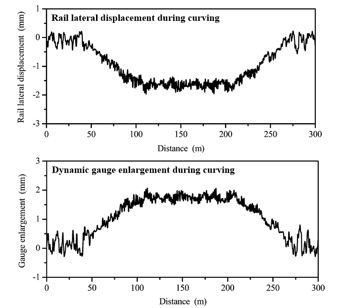 Their study indicates that vehicle curving can cause obvious lateral vibrations of rails and can make the rails roll over under the action of lateral wheel–rail forces, resulting in dynamic enlargement of the gauge. The rail’s lateral motion can lead to changes in the position of the wheel–rail contact points, which influences the wheel–rail forces and thereby eventually the curving performance of the vehicle. Therefore, it is necessary to consider the vibration of the track structure when evaluating the curving performance.