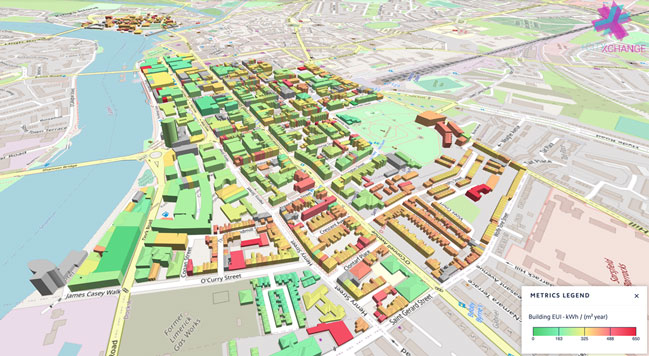 In partnership with Limerick City and County Council, UL leads +CityxChange, a €20 million project putting Limerick and Trondheim in Norway at the forefront of clean technology delivery in Europe. This 3D image showing energy demand distribution in Limerick city centre. This digital twin of the city was developed through the +CityxChange project to enable the co-creation and replication of positive energy blocks and districts and is in use by Limerick City and County Council to plan how the city can decarbonise. Prof Stephen Kinsella, Kemmy Business School, UL who is a UL Lead on the project said: "The project demonstrates the University’s commitment to the city and to its economic and social future, in partnership with the City and County Council. Limerick is Ireland’s first lighthouse city. The project is an opportunity to show that we can deliver new solutions and actually put them into action in Limerick, first.”