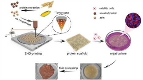 “These are some of the biggest challenges in finding an edible ink suitable for EHD printing of the scaffolds. We tested various materials and finally decided to use plant protein to make scaffolds,” says Professor Sun.