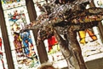 Nick Elphick with his sculpture Man and Nature at the Cathedral Steel exhibition at Sheffield Cathedral. Works by students at Sheffield Hallam and Loughborough universities were commissioned by...