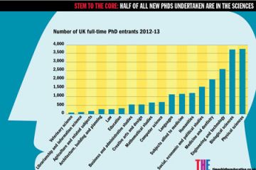 Almost half of all students starting PhDs are working in the physical sciences, the biological sciences or engineering and technology fields