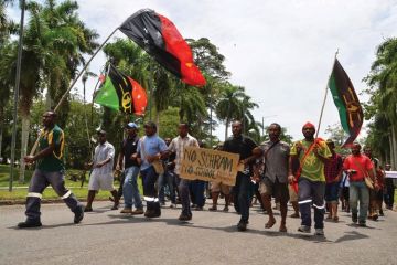 Students protest in support of Dutch-born university head Albert Schram, expelled by the government in 2013