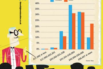 The proportion of male academics earning in excess of £56,467 is more than double that of females