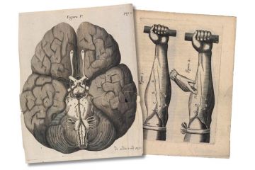 The diagram showing the flow of blood in the forearm is taken from William Harvey’s De Motu Cordis (1628), a pioneering exposition of how blood circulates around the body