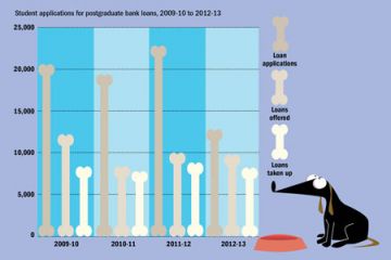 The number of postgraduates applying for career development loans fell by 43 per cent between 2011-12 and 2012-13