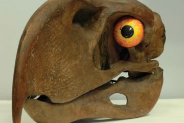 This sculpture of a "terror bird", with painted polystyrene eye, can be found in the Alfred Denny Museum at the University of Sheffield.