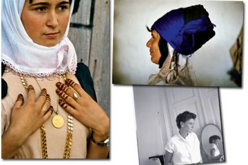 These pictures of women - one wearing a blue silk headdress, the other displaying her gold engagement jewellery and hennaed hands - were taken in rural Turkey in the 1980s.