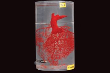 This cast reveals the circulation within the heart of a greyhound. It was made by injecting coloured liquid acrylic into structures such as blood vessels and air-filled spaces and then allowing it to...