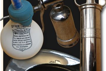 These instruments (see image, right) - inhaler, ether mask, bedpan, a syringe made by Philip Harris and Company and a device used during anaesthesia that contains a Sparklets bulb similar to those in...