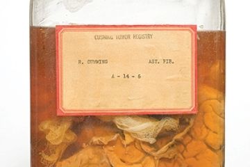 This is one of more than 400 glass jars containing human brains and tumours on display at the Cushing Center in the Cushing/Whitney Medical Library at Yale University. They were donated by Harvey...