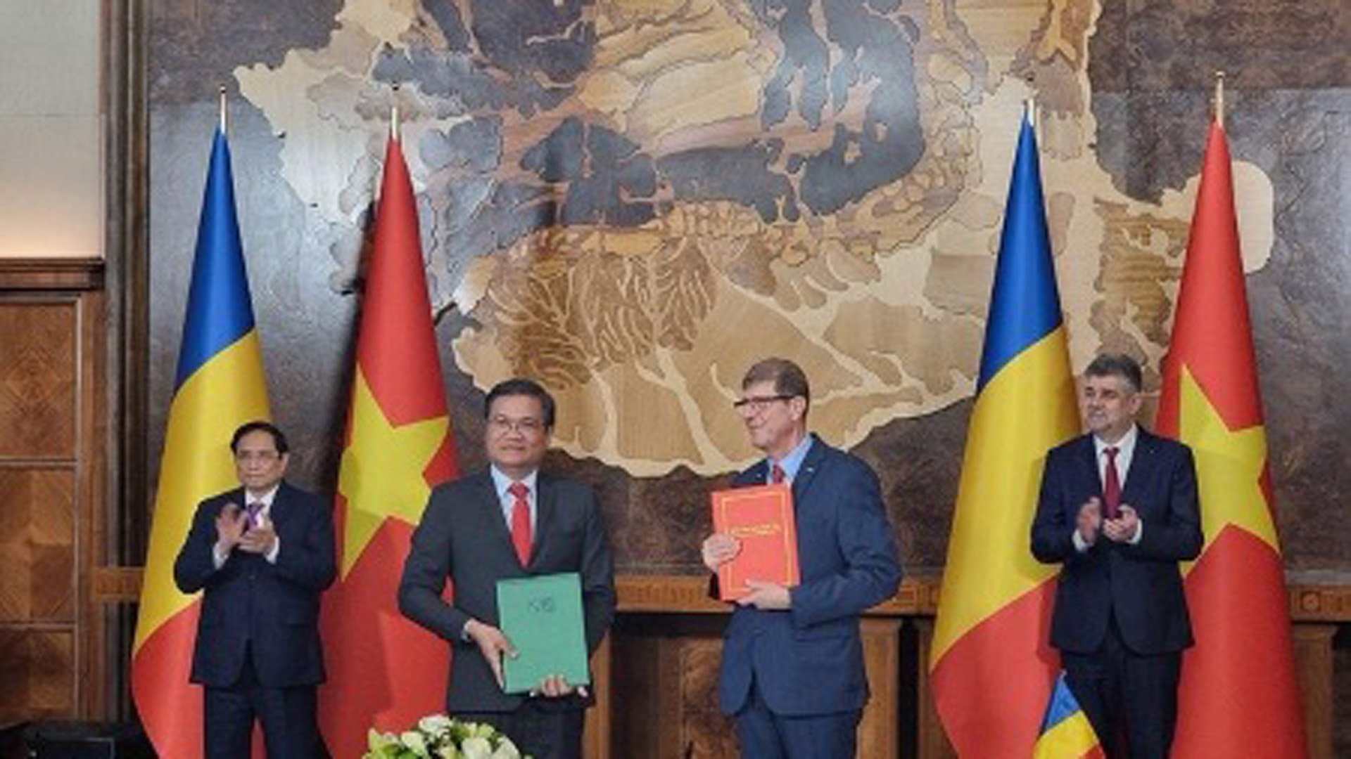 President of HCMCOU, Nguyen Minh Ha (pictured second from left), at the signing ceremony of a cooperation agreement with a partner institution in Romania