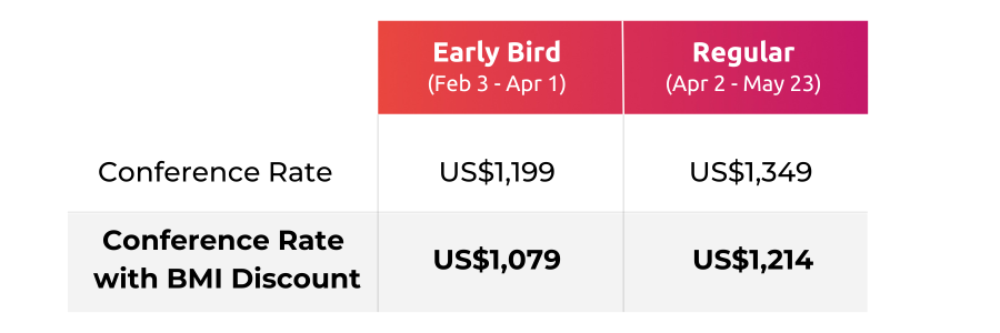 The unique promo code 26BMIGBD must be used when completing online registration. The 10% discount will be applied immediately at checkout. The discount cannot be applied to pre-conference workshops or special events taking place at the NAFSA Annual Conference & Expo.