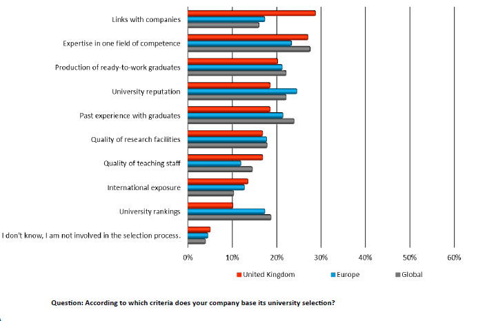 According to the survey, UK recruiters are also more likely to prefer universities with whom they have an existing link.